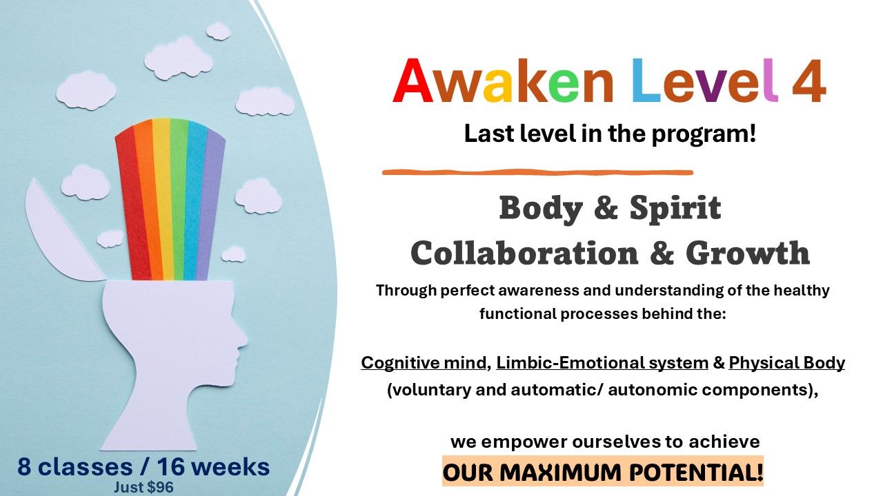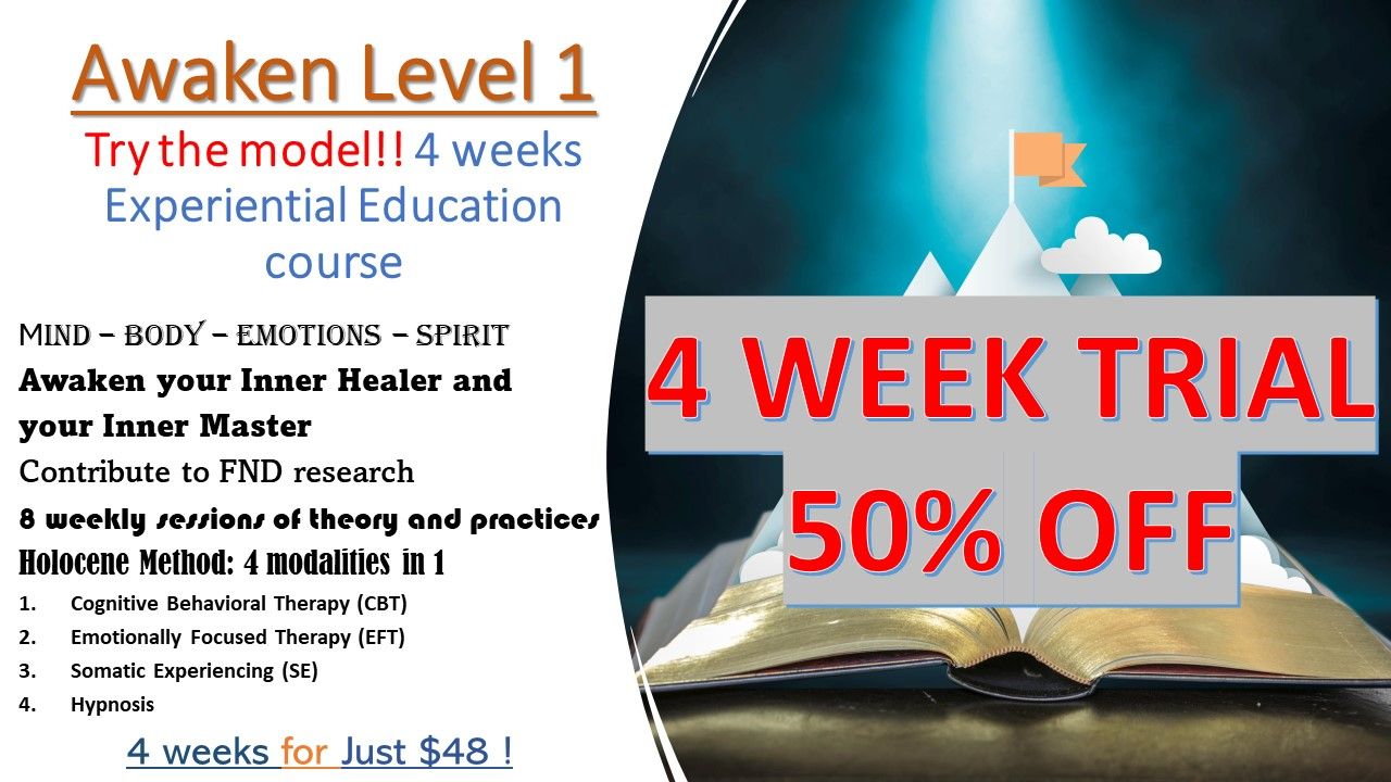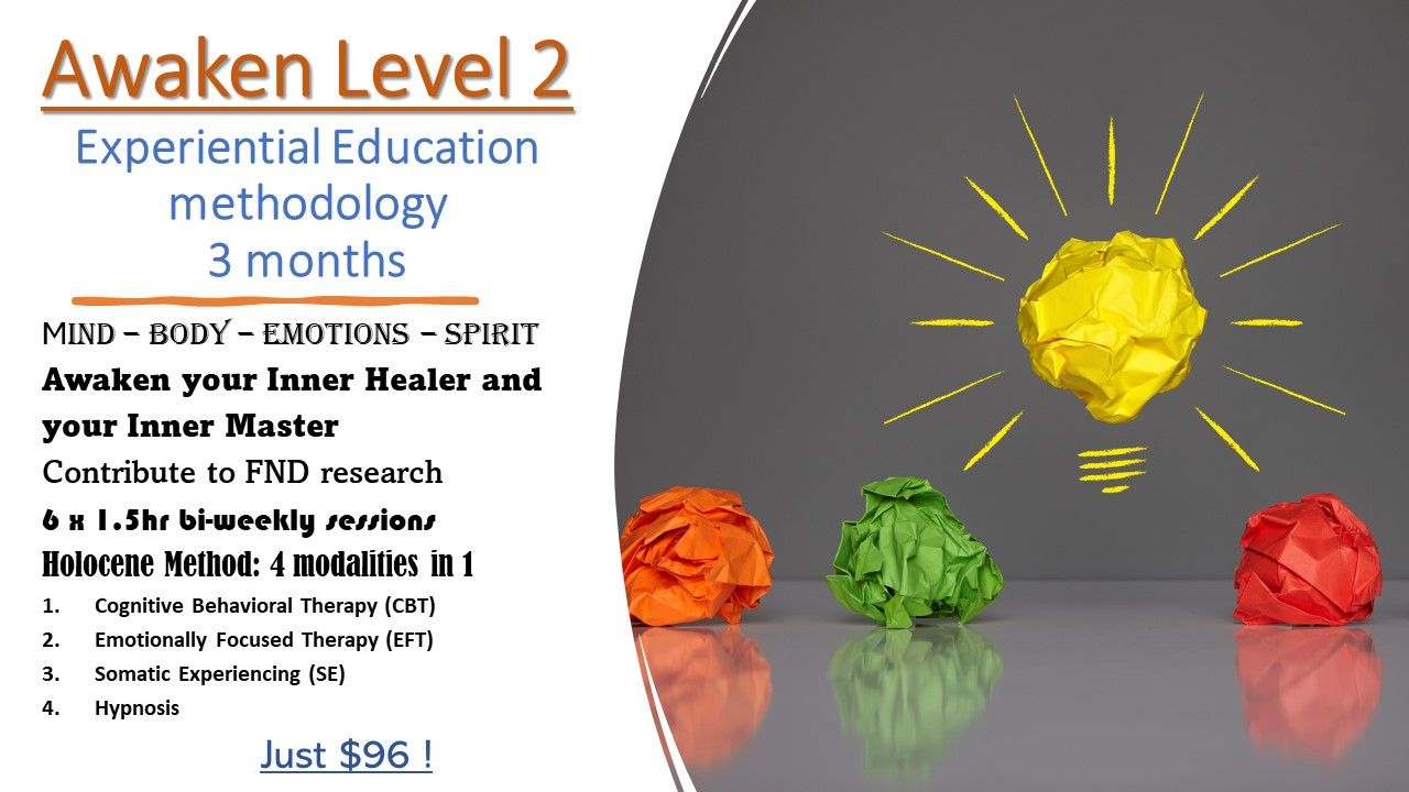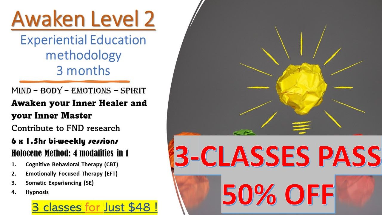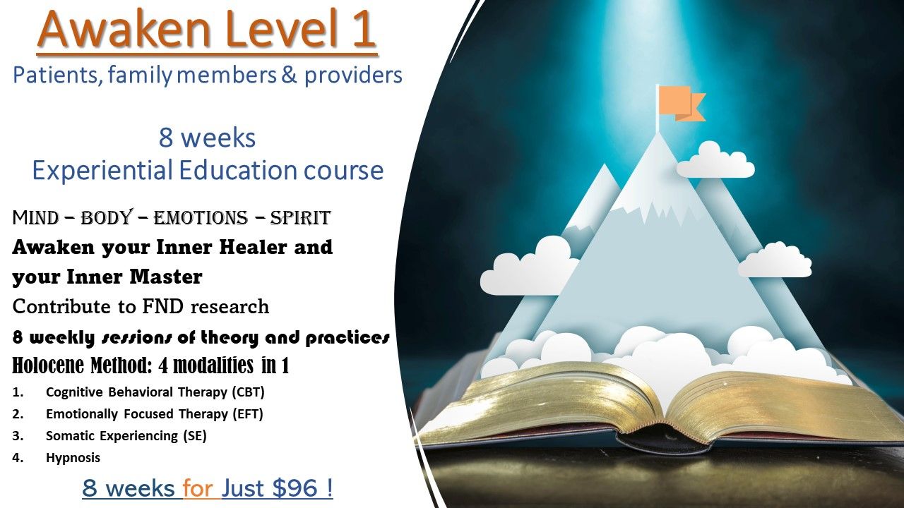 For the general public and individuals affected by functional disorders, including their families. For details click on each course below. AWAKEN are group classes, as we learn and practice with one another: